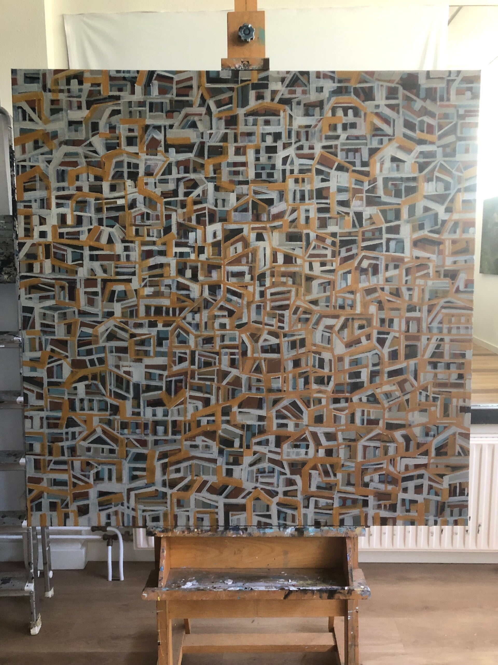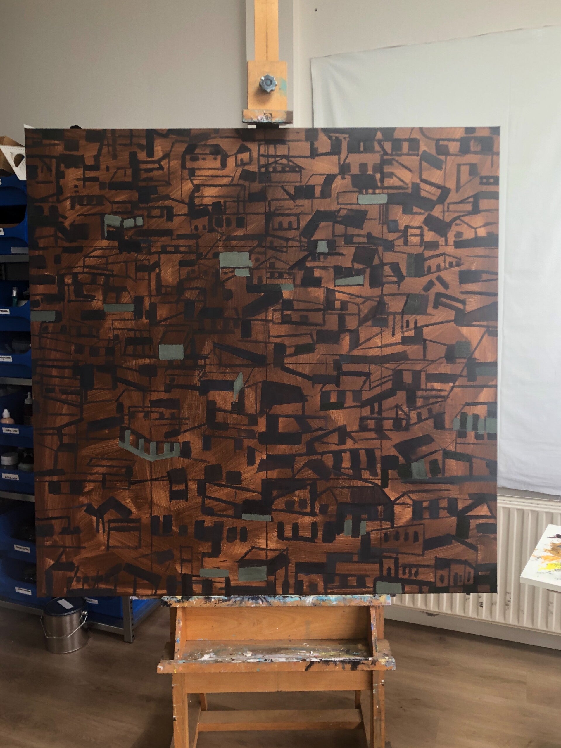 " Bergstad Symphony" Een scheppingsreis! In dit korte overzicht wil ik jullie het proces achter mijn schilderij laten zien. Opbouwen, afbreken, en dan weer opbouwen - het maakt allemaal deel uit van de artistieke reis. Het resultaat is een levendig kunstwerk dat de essentie van een bergstad vastlegt. Geniet van een kijkje achter de schermen in mijn creatieve proces!